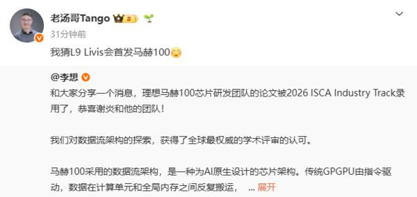 3月30日,理思汽车CEO李思在外交媒体上称,马赫100芯片研发团队的论文被2026 ISCA Industry Track托福。随后,理思汽车家具线负责东谈主汤靖推断称,马赫100芯片或将由理思L9 Livis首发。